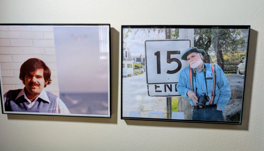 (l) Steve Miller Ocean City Maryland 1977, photo by Jean Appleton. (r) Steve Miller at Stonington Maine October 2022, photo by Sharon Lee.